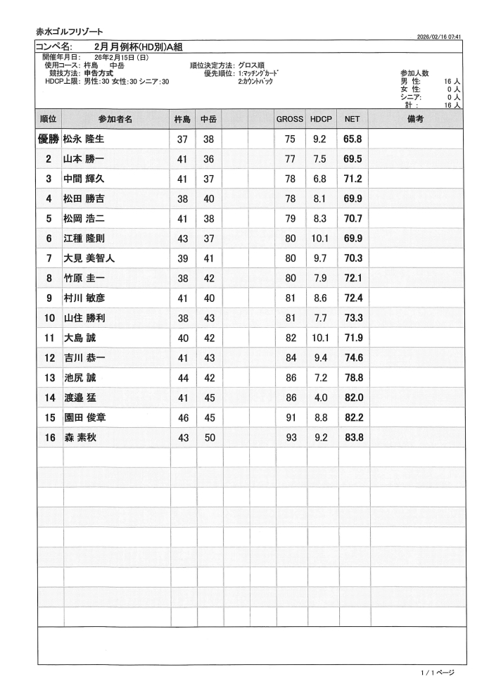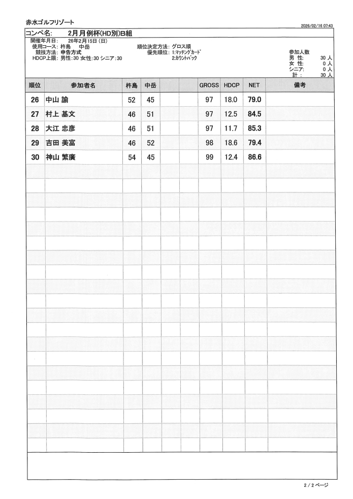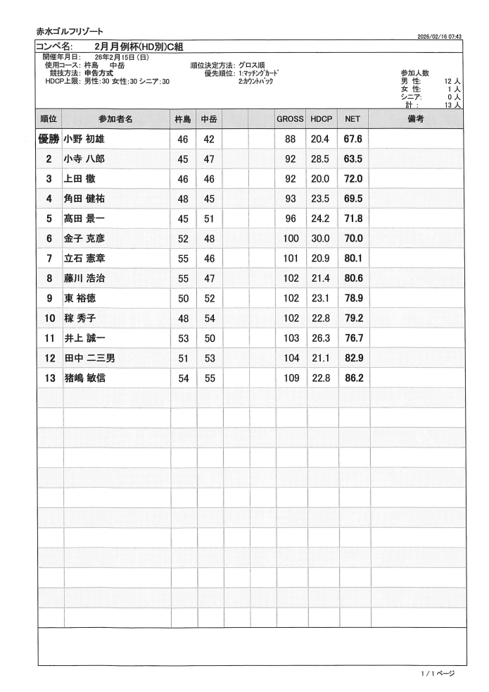 2月月例杯(HD別)