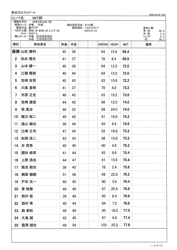 2月寄贈杯 【KKT杯】